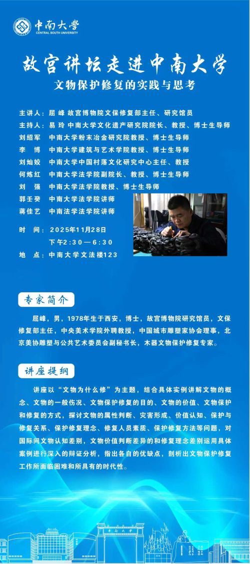 【讲座预告】屈峰:故宫讲坛走进william威廉亚洲:文物保护修复的实践与思考