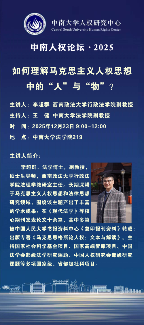 【讲座预告】李超群:如何理解马克思主义人权思想中的“人”与“物”?