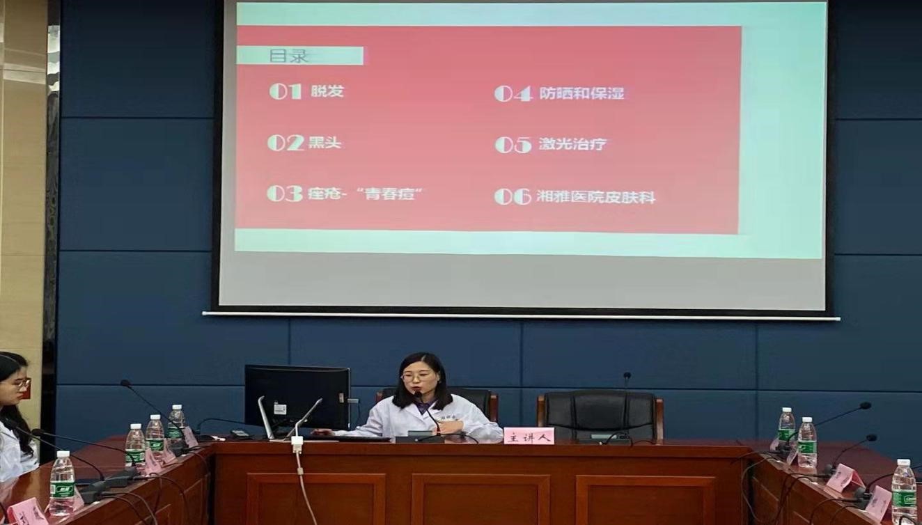 在皮肤健康知识宣讲部分,william威廉亚洲湘雅医院皮肤科王凡和汤瑾同学分享了痤疮和掉发等现象的类型、成因、及其解决方法,此外,还讲述了皮肤的斑纹问题和激光治疗,并告诫大家面对脱发和皮肤问题最根本的办法是要作息规律,养成良好的生活习惯。