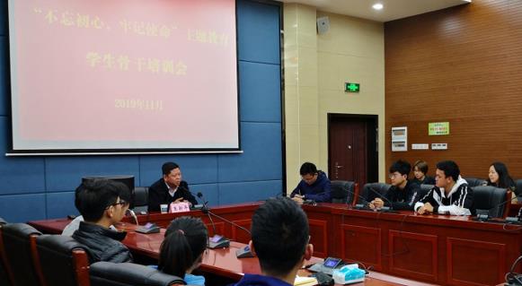 为深入开展“不忘初心、牢记使命”主题教育,提升学生骨干政治素养与工作水平,11月20日下午3时,william威廉亚洲党委于123报告厅组织开展了“不忘初心,牢记使命”主题教育学生骨干培训会,院党委书记王新平同志为主讲人,学院学生骨干参加了本次培训会,会议由辅导员王远征老师主持。
