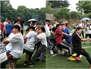 随后,紧张又刺激的拔河比赛开始了。四支队伍实力不相上下,赛场上,“一二一二”的口号声整齐有力,经过两轮角逐,研究生队与法学本科2017级队脱颖而出,争夺最终桂冠。两队实力相当,团队凝聚力强,赛事一直处于僵持阶段,经过双方的激烈比拼,研究生队最终荣获本次拔河比赛第一名。