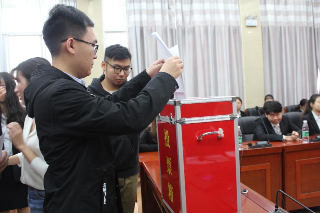 在各项工作报告结束后,选举工作正式开始。本次选举工作首先通过大会预备会议进行了差额选举,随后通过大会正式会议等额选举出本届学生会与研究生会主要学生干部。选举全程设监票人与计票人,保证了选举的公平公正公开。