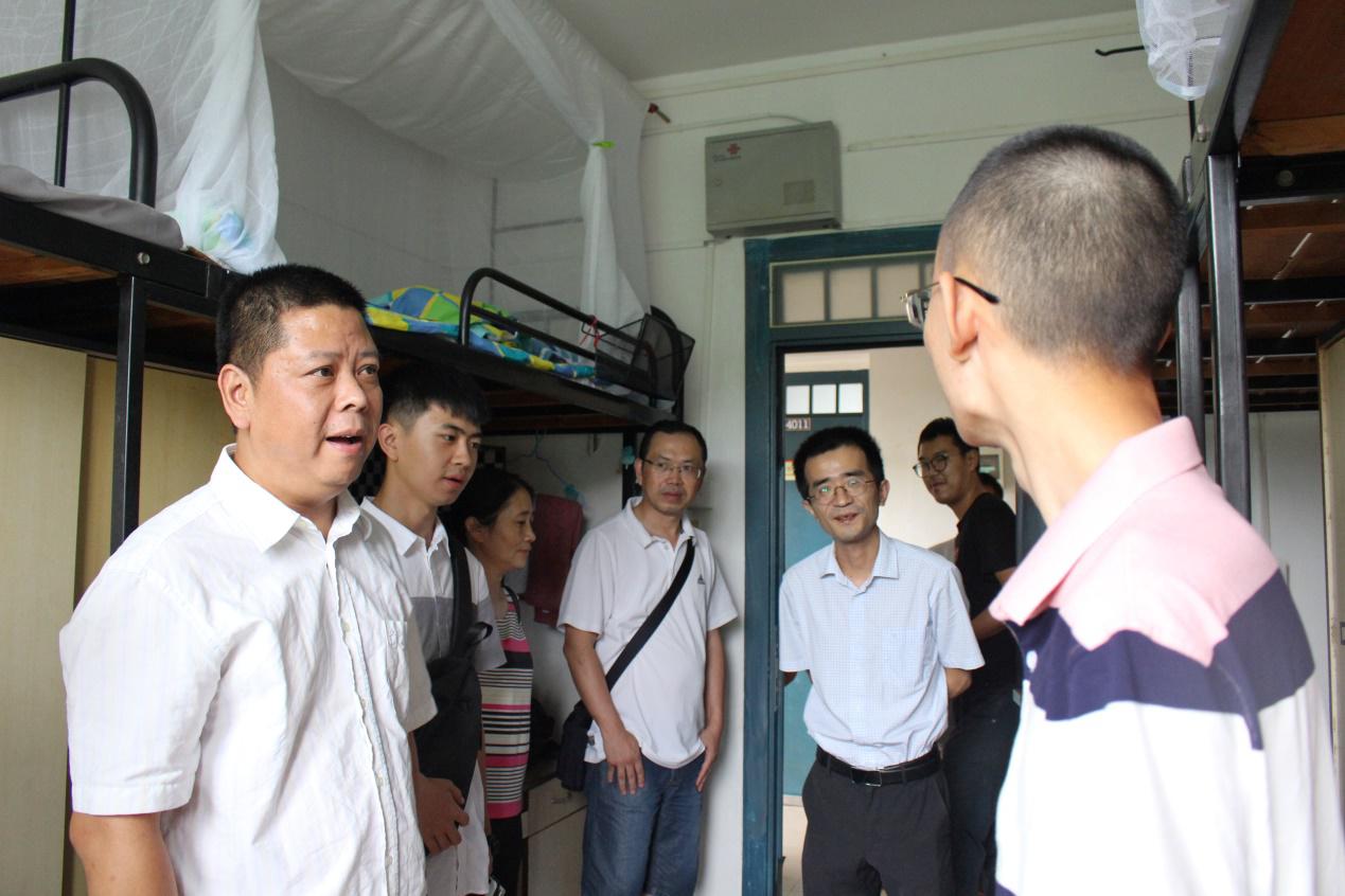 王书记一行一踏入寝室,就受到了同学和家长们的热烈欢迎。在走访过程中,王书记亲切地和同学们打招呼,并问同学们都来自哪里。他尤其关心衣食住行方面的问题,屡次询问初次来到长沙的同学有没有不适应的情况,提醒同学们注意天气,并鼓励同学们珍惜大学时光,努力成长成才。黄曦主任也对于远道而来的同学给予了慰问和关心,并且嘱咐室友间和谐相处互相帮助。2018级辅导员向鑫老师细心的记录下了同学们的入学情况,帮助同学们解答生活学习等多方面的问题,给大家带来了满满的感动。领导老师与新生们的沟通也让大家都放下了初到新环境的不适应,对大学生活充满了期待,积极投入到新的学习生活中来!