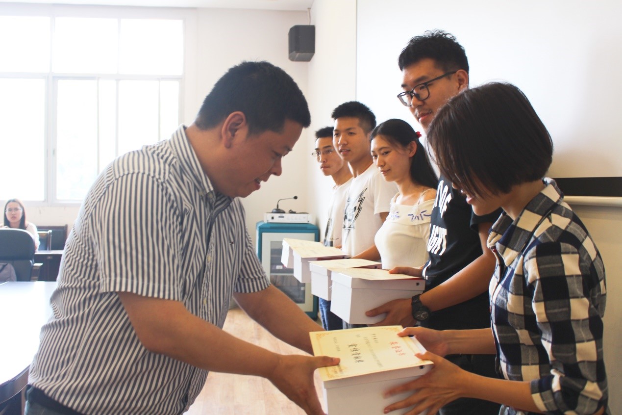 (王新平书记为同学们颁发奖品)