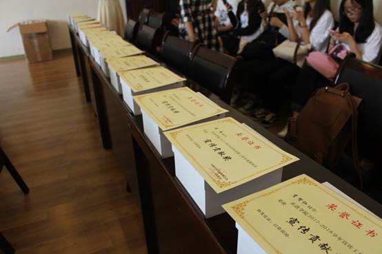 随后进入颁奖环节,王新平书记分别为各部门宣传干事颁发奖状与奖品。与会领导老师和全体参会学生干部合影留念,使受到表彰的同学们感受到了极大的激励与鼓舞。
