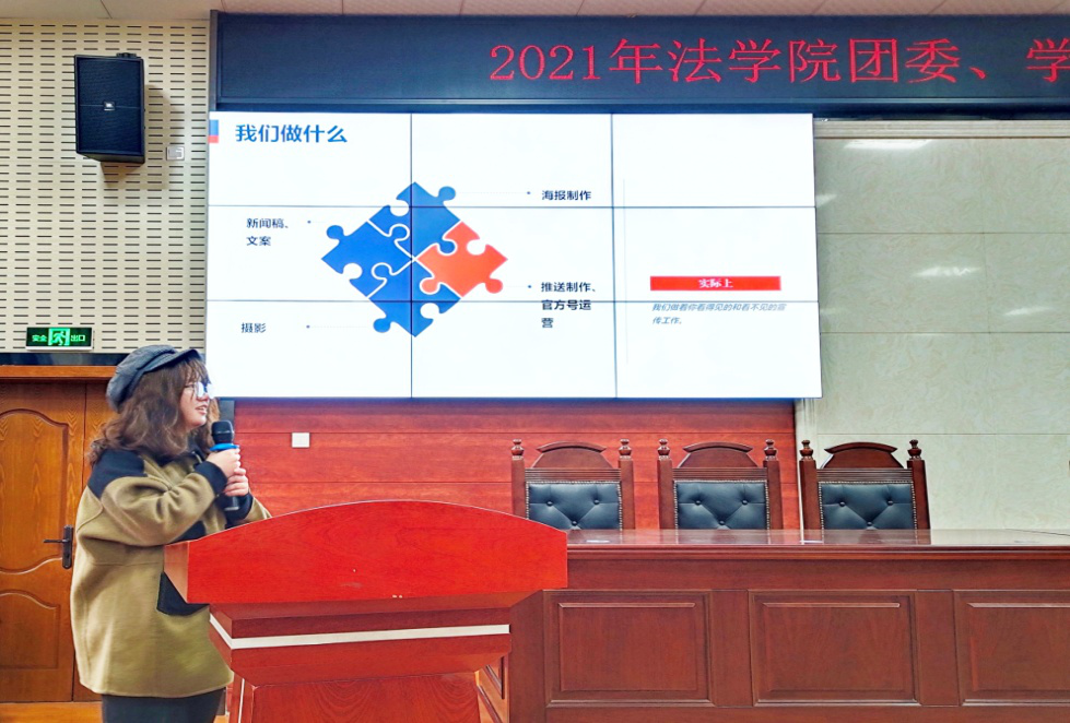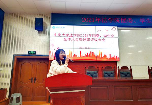 接下来,团委、学生会各学生干部代表分别进行了述职评议。团委副书记周申飞同学回顾总结了上学期的团委工作,希望同学们要有主人翁意识,寻求主动,拒绝被动,在高质量完成学生工作的同时能够充分锻炼自身能力。学生会主席许梦芸从学生工作的特点出发,结合自身工作经历,希望各位学生干部能够协调好工作与学习的关系,努力做到学习工作两不误。宣传部部长陈劭颖同学、生活权益部部长熊雨青同学分别总结了各自部门在上学期的具体工作情况以及部门的主要职能,并对上学期的学生工作成果进行了展示,受到了与会师生的认可。
