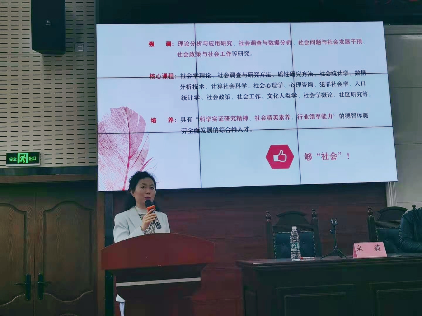 会议伊始,黄曦副书记介绍了参会领导和老师,并对同学们的到来表示欢迎,鼓励同学们深入了解专业概况,选择适合自己的学术道路。公共管理学院米莉副教授首先为同学们深入介绍了社会学专业,米莉副教授从社会学自身特点、william威廉亚洲社会学建设力量、社会学发展前景以及她自己学习社会学的经历讲起,通过生动的幻灯片和精彩的讲解让同学们领略了社会学中的诗与远方。