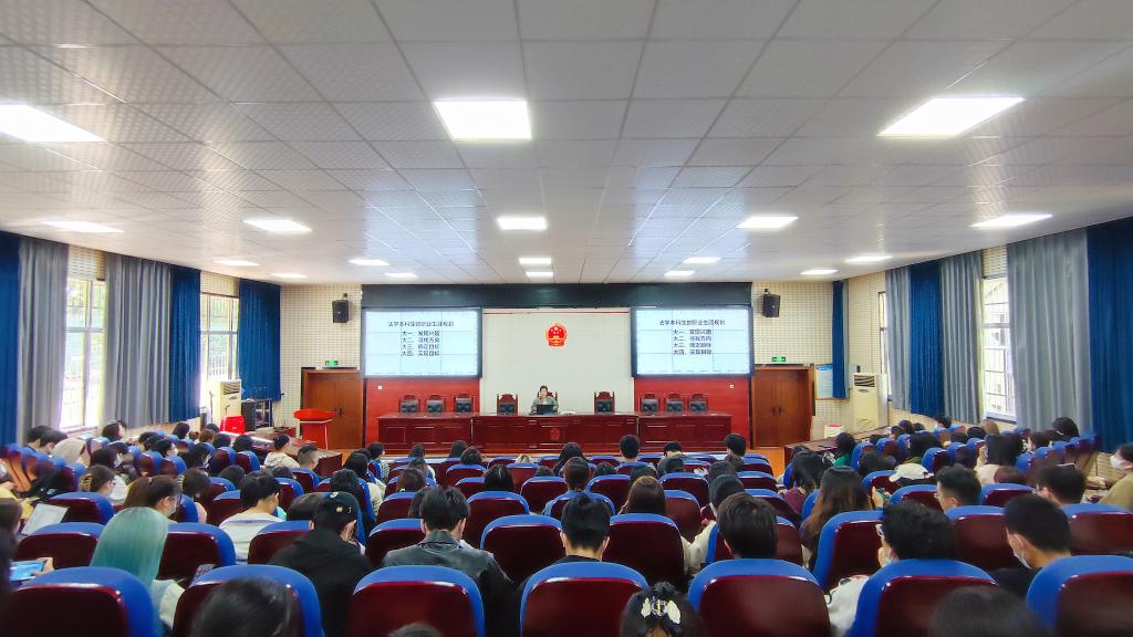 本次会议主要由四个部分组成:给大二年级法学本科生的建议、法学毕业可以做什么、法学本科生大学期间做什么以及日常管理注意事项。