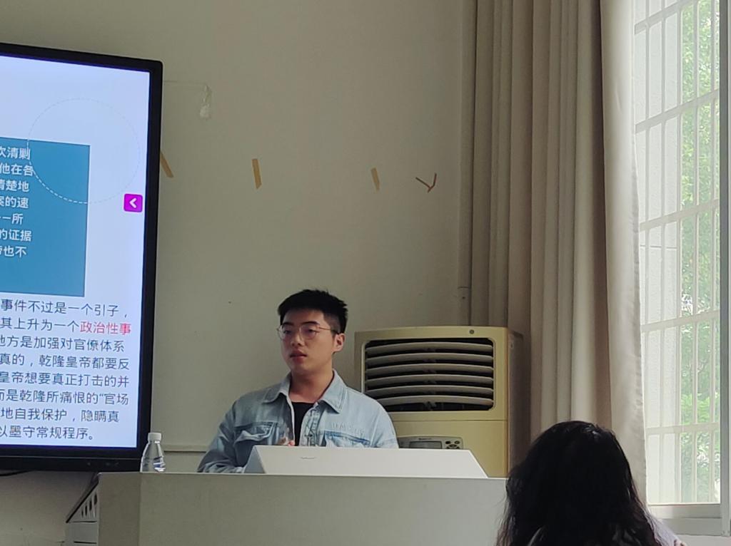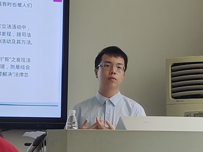 刘璐璐与罗宇琦同学讲解了本书的具体内容,揭露了古代官僚体系与刑罚体系的黑暗与腐败,通过荒谬而真实的案子讲述了古代官僚体系下监察体制的崩溃过程,所谓的“叫魂”只是“产生于无知又滋长于忌恨的一个幽灵,不过是奸刁之徒利用民间恐惧谋取私利的一个例子”。并由此反思滥用刑讯逼供的弊端与当代适用,以充分保障人权。赵钧锐同学从民间普通百姓、官僚体系和专制君主三个层面深入分析了本书表达的深刻内涵,一个体制的崩溃并不是一方之责,表面平和的背后危机四伏,危机蚁溃堤坝,气泄针芒。最后,赵钧锐同学进行了总结,阐释了本书对法学生的意义,提高思辨能力,锻炼以小见大的探知能力。