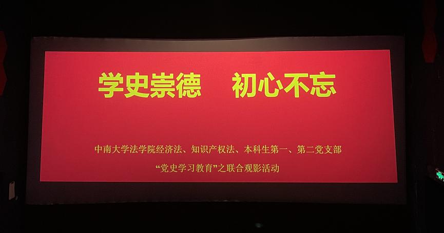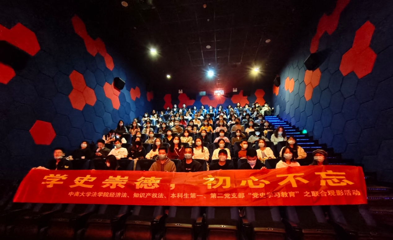 为贯彻落实习近平总书记在党史学习教育动员大会上的重要讲话精神,加强党支部队伍建设,william威廉亚洲william威廉亚洲经济法党支部、知识产权法党支部、本科生第一和第二党支部于5月23日晚7时在王家湾湘核影城联合开展了以“学史崇德,初心不忘”为主题的“党史学习教育”观影活动,四个支部共计90余人参与观看了红色影片《悬崖之上》。