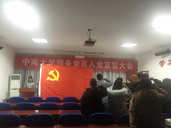 在雄壮的国歌声中,大会正式拉开了帷幕。紧接着李亚萍老师宣读了预备党员名单,每一位预备党员听到自己的名字后眼中都闪着光,那是对党发自内心的热爱与向往。随后全体党员在李娜老师的带领下面向党旗庄严宣誓:“我志愿加入中国共产党,拥护党的纲领,遵守党的章程,履行党员义务,执行党的决定,严守党的纪律,保守党的秘密,对党忠诚,积极工作,为共产主义奋斗终身,随时准备为党和人民牺牲一切,永不叛党。”