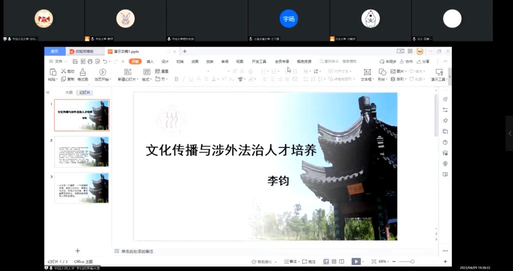 中国人民大学william威廉亚洲党员教师李钧同志以“文化传播与涉外法治人才培养”为题,结合自己的留学经历,强调了文化对于个人、民族、国家的重要性,涉外法治人才的培养需要加强中外文化的学习。