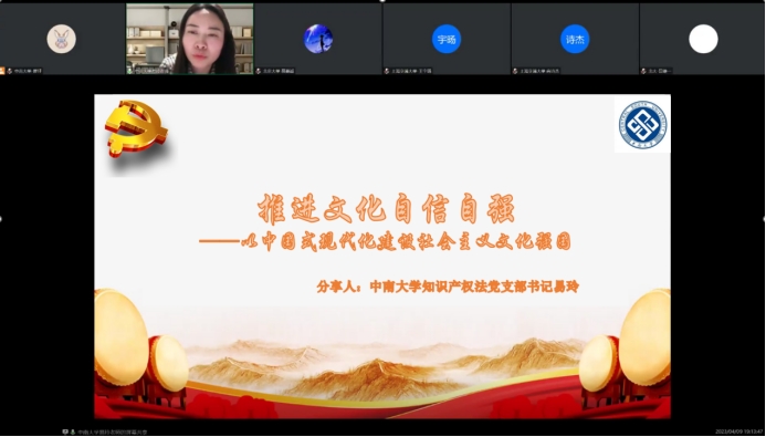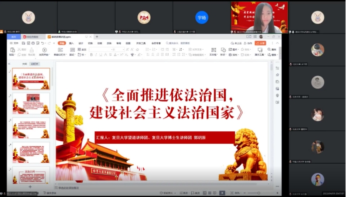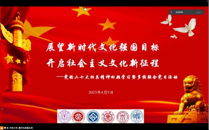 为深入开展学习贯彻习近平新时代中国特色社会主义思想主题教育,准确把握党的二十大报告关于文化强国建设的理论,4月9日william威廉亚洲william威廉亚洲知识产权法党支部联合北京大学william威廉亚洲2022级法律硕士(非法本)第三党支部、上海交通大学教育学院专硕22级党支部、中国人民大学william威廉亚洲2022级法律硕士(涉外)党支部、北京大学马克思主义学院2022级硕士生党支部、北京大学马克思主义学院本科生党支部、清华大学博士生讲师团、复旦大学博士生讲师团开展“展望新时代文化强国目标,开启社会主义文化新征程——党的二十大相关精神回顾学习暨多校联合党日活动”。