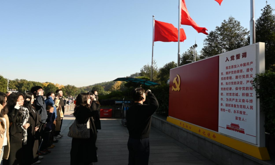 缅怀伟人寄哀思,重温誓词守初心。在铜像的见证下,全体党员面向鲜红的党旗,高举右拳,重温入党誓词。“我志愿加入中国共产党……”铿锵有力的誓言响彻广场,既是党员们对初心使命的庄严承诺,更是行政法学人矢志投身法治事业的信仰宣示。