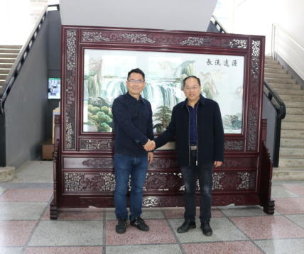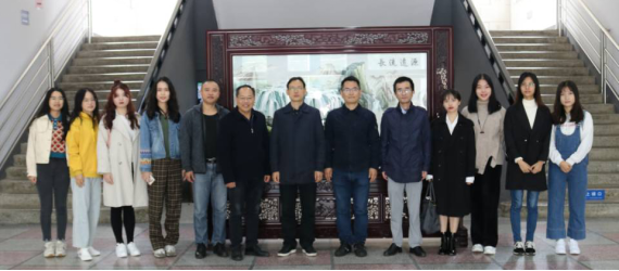 ( 毛俊响书记、许中缘院长、黄曦副书记、刘继虎教授、夏少涛主任以及在校学生代表于屏风前合影留念)