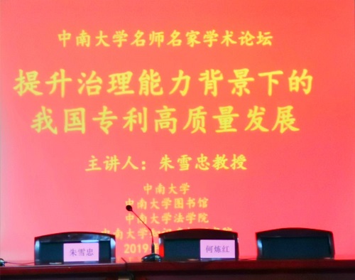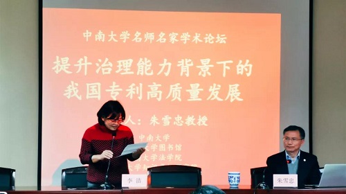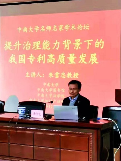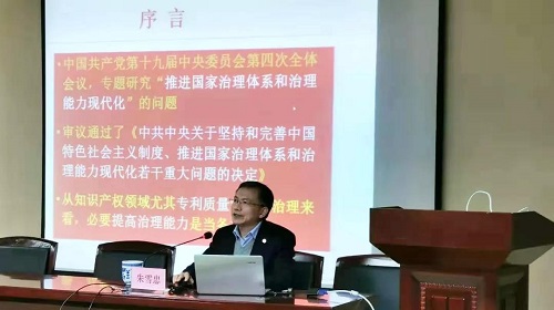 (朱雪忠教授做“提升治理能力背景下的我国专利高质量发展”讲座)