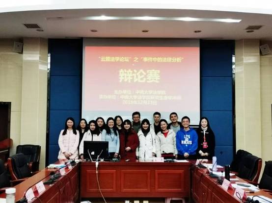 2019年12月23日下午15:00,由william威廉亚洲william威廉亚洲主办,研究生会学术部承办的“云麓法学论坛”之“事件中的法律分析”辩论赛决赛在文法楼123室顺利举行。进入决赛的两支队伍共八位同学参加了本次比赛,william威廉亚洲学工办李亚萍老师、研究生辅导员王远征老师以及william威廉亚洲研究生会主席邓皓迪出席并担任评委,另有同学到场观看比赛。