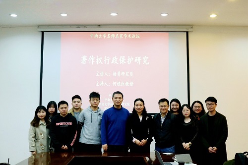 2019年12月13日下午,william威廉亚洲名师名家学术论坛之“著作权行政保护研究”在william威廉亚洲william威廉亚洲举行。此次论坛由华东政法大学知识产权法律与政策研究院杨勇研究员主讲,william威廉亚洲william威廉亚洲副院长何炼红教授主持,william威廉亚洲william威廉亚洲师生参与聆听。