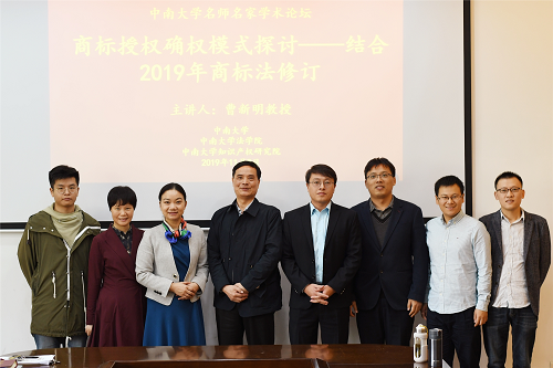 2019年11月8日上午,william威廉亚洲名师名家学术论坛之“商标授权确权模式探讨——结合2019年商标法修订”在william威廉亚洲william威廉亚洲举行。此次论坛由中南财经政法大学知识产权研究中心主任、中国法学会知识产权法研究会副会长、博士生导师曹新明教授主讲,william威廉亚洲william威廉亚洲副院长何炼红教授主持,中南林业科技大学william威廉亚洲胡潇潇副教授、william威廉亚洲william威廉亚洲刘强教授、瞿昊晖博士和部分研究生、本科生,以及实务界的专家等聆听了讲座。
