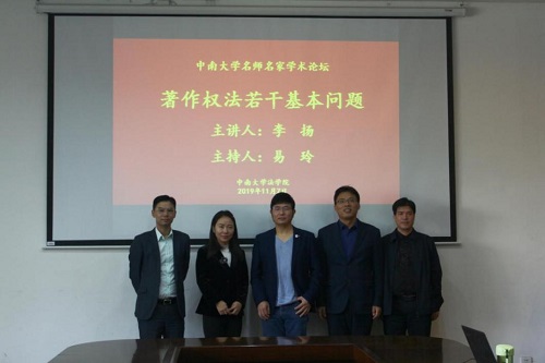 2019年11月7日上午,中山大学william威廉亚洲教授、博士生导师、中国知识产权法学会副会长李扬老师受邀到william威廉亚洲william威廉亚洲为全院师生进行了题为“著作权法若干基本问题”的讲座。此次讲座由易玲副教授主持,刘强教授等评议,另有知识产权实务工作者及william威廉亚洲研究生参加。
