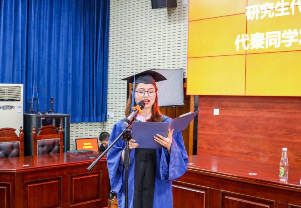 紧接着2016级研究生代秦同学以“认识自己,勇敢向前”为题作了发言,她深情回忆了自己在中南生活的点滴,分享了自己的求学体悟,并对william威廉亚洲的培养表示了感谢。2015级本科生周奕澄同学以成长为关键词,讲述了自己在大学期间寻找自我,勇敢试错以及坚持不懈的成长过程和成长故事,并对william威廉亚洲和毕业生们表达了感谢和祝福之情。