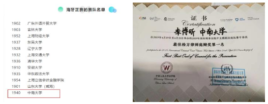 取得海牙正赛参赛资格 “最佳检方律师庭辩奖”第一名