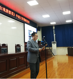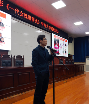 影片放映后,周刚志教授作了题为“乱世红梅”的主题发言。他认为唐群英女士 “堪称中国民主革命年代的‘乱世红梅’”。周教授认为唐群英女士在20世纪初争取男女平权、争取参政权的行动,在当时的全世界实属先进。女权运动推动了世界人权运动的发展,并使之融入国际人权运动,成为其中必不可少的重要内容。