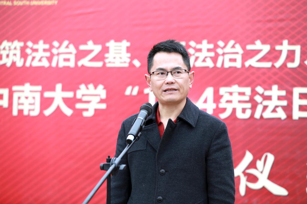12月4日上午九点,william威廉亚洲“12.4宪法日”系列活动启动仪式暨“宪法晨读”活动在新校区问渠长廊举行,启动仪式由william威廉亚洲党委书记毛俊响教授主持,校党委副书记黄健陵教授、校党委宣传部常务副部长胡杨、副部长欧光耀,william威廉亚洲党委书记毛俊响教授、院长许中缘教授、党委副书记黄曦、关工委常务副主任李满春及来自全校不同专业的150余名师生代表共同参与了此次启动仪式。校党委副书记黄健陵教授在启动仪式上指出 “三要”:一要提高政治站位,二要持续深入推进,三要坚持创新形式,william威廉亚洲院长许中缘教授提出我们要借此契机,不断弘扬宪法精神,维护宪法权威,彰显社会主义制度的法治的优越性。随后,全体师生齐读宪法,感受宪法权威。仪式最后,校党委副书记黄健陵教授为四名普法志愿者代表授旗,宪法日系列活动正式启动。