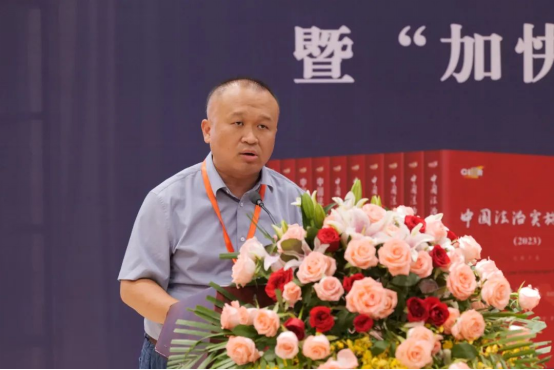 最高人民法院审判委员会副部级专职委员王淑梅委托人民法院出版社党委副书记、总编辑胡立新同志出席会议并致辞。他指出,《中国法治实施报告》自2013年创办以来,已在人民法院出版社连续出版6年,报告紧扣时代之问,锚定全面依法治国的关键——法治实施,聚焦新时代中国法治建设新篇章,从宏观鸟瞰、主体框架、专题专域到微观个案,多维度、全景式地呈现了党的十八大以来中国法治建设的伟大成就,填补了国内此类研究成果的空白。报告由著名法学家江必新担任主编,国内法治各领域知名专家学者亲自主笔,始终保持报告的高品质和权威性,经过十一年的打磨,已成为法治实践和法学研究的一块响当当的拳头品牌。作为《中国法治实施报告》的出版方,倍感荣幸,又深感责任重大。