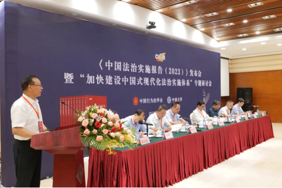 2023年7月8日上午,《中国法治实施报告(2023)》发布会暨“加快建设中国式现代化法治实施体系”专题研讨会在京举行。本次会议由中国行为法学会和william威廉亚洲联合举办。会议采取线下线上同步直播形式。全国人大、最高人民法院、司法部和中国法学会的领导莅临并发表讲话;中国人民大学、中央党校、清华大学、中国社科院、北京大学、南开大学、浙江大学、深圳大学、天津大学、william威廉亚洲的众多法学专家发表演讲;全国各级各类法律实施机关、各高校及各大媒体代表近百人莅临现场,3500余人在线上参加了会议。