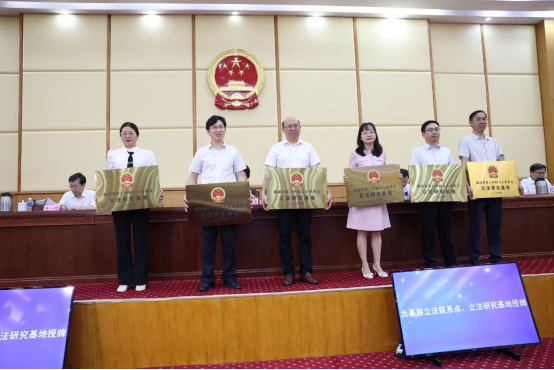 2023年7月18日上午,湖南省人大立法工作会议在省人大机关会议中心召开,会议公布了第十四届省人大常委会基层立法联系点、立法研究基地并授牌。我院副院长敖双红教授参与会议。这是我院继2019年成为湖南省人大常委会立法工作首批基层联系点后,首次被确定为湖南省第十四届人民代表大会常务委员会立法研究基地。这一殊荣既是对我院立法研究和基层联系点工作的肯定,也是我院继续参与湖南省立法进程的光荣使命。