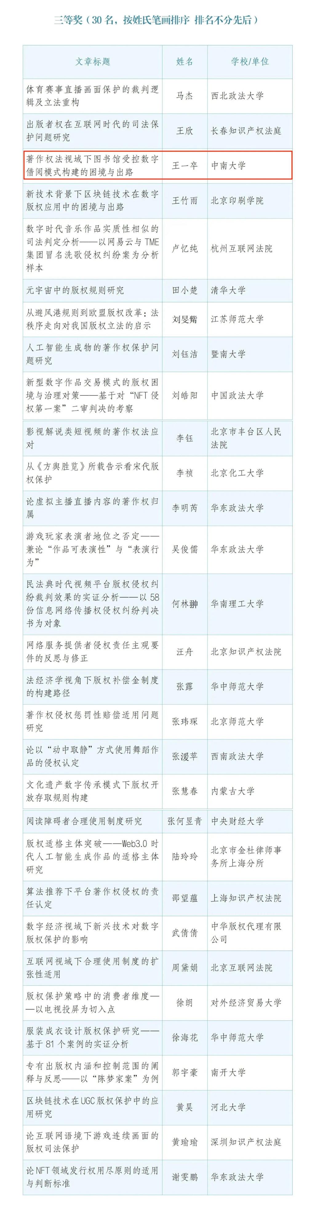 william威廉亚洲william威廉亚洲、william威廉亚洲知识产权研究院长期以来积极贯彻落实知识产权强国战略,高度重视知识产权专业人才的教育培养,积极组织学生参加版权征文活动和各类专业竞赛。在本次活动中,再获佳绩。未来,我们将继续深入贯彻落实党中央、国务院关于知识产权强国建设的战略部署,培养更多堪当强国建设重任的时代法治新人,为推动新时代全面依法治国重大战略贡献力量。
