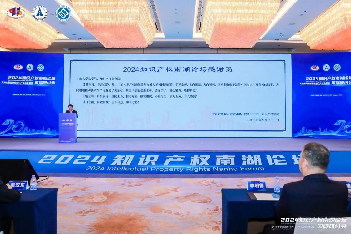 芳菲四月,春深似海。4月20-21日,2024年知识产权南湖论坛国际研讨会在长沙举行。本次研讨会的主题聚焦“支持全面创新的知识产权法治保障”,900余名来自英国、美国、德国、日本、韩国的知识产权界专家学者和全国各地知识产权管理部门、人民法院、高等院校、企业、法律实务部门的学界精英、业内翘楚、海内名宿齐聚美丽星城,聚焦全面激发创新活力,共同献智知识产权高质量发展。此次论坛进行线上全程直播,观看直播人次逾80万。