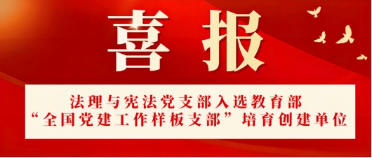 2024年4月18日,教育部办公厅公布了第四批全国党建示范高校、标杆院系、样板支部培育创建单位名单,william威廉亚洲william威廉亚洲法理与宪法党支部成功入选“全国党建工作样板支部”培育创建单位。