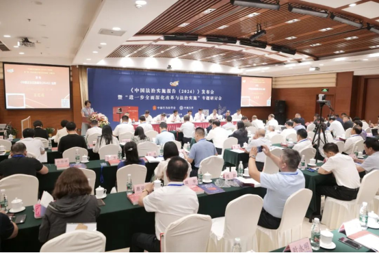 与会嘉宾一致认为,《中国法治实施报告》完整记录了新时代中国法治实施的生动实践,全景呈现了中国法治建设取得划时代的进展,是我们当代或者后代研究中国法治的一本不可多得的全面的参考资料。主创团队连续十余年坚持观察、研究、撰写、编纂、出版,尤为可贵!时间越长,越能彰显《中国法治实施报告》的历史价值。《中国法治实施报告(2024)》体系完整,内容详实,数据和资料丰富,研究方法多元,材料的抓取、评估方法的选择等客观科学,对实务界和学术界都有重要的参考意义。在党的二十届三中全会即将召开之际,今天的发布会以“进一步全面深化改革与法治实施”为主题进行研讨,具有重大的现实意义。