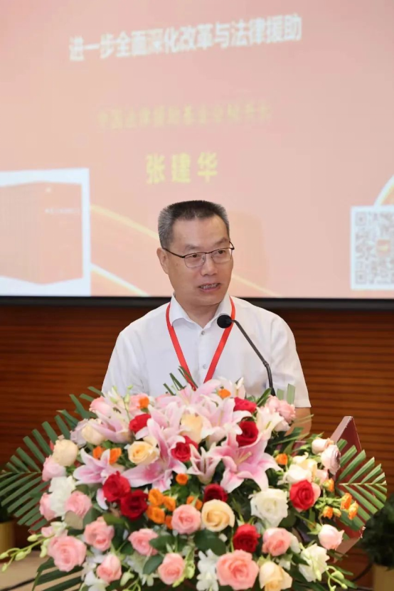 中国法律援助和司法行政英烈关爱救助基金会秘书长张建华以《进一步全面深化改革与法律援助》为题发表演讲,在正经历产业革命的现阶段,在发展新质生产力的社会背景下,法治尤其应当关注因新质生产力发展受到负面影响的群体,那些因为新质生产力发展退出生产过程的人们。法律援助是法治建设不可或缺的重要环节,为新质生产力发展创造良好的社会条件,离不开法律援助。