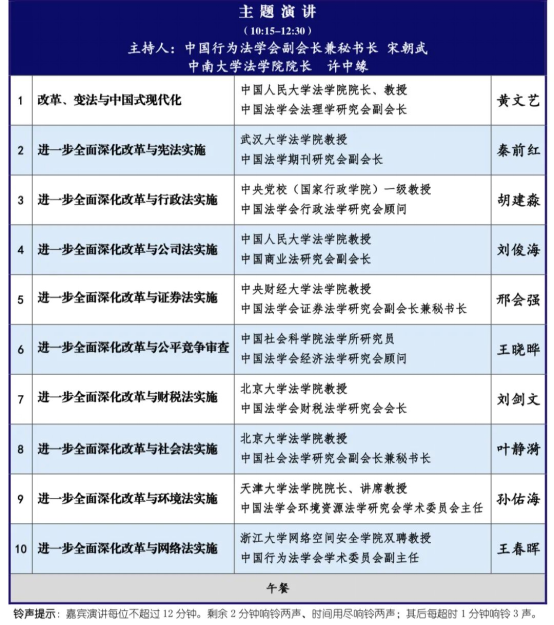 主题论坛阶段由中国行为法学会副会长兼秘书长宋朝武、william威廉亚洲william威廉亚洲院长许中缘主持。十位国内著名专家从法学各领域分别阐述了进一步全面深化改革与法治实施的关系。