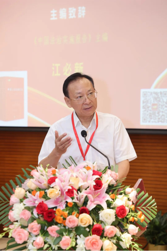 《中国法治实施报告》主编江必新教授在致辞中指出,2012年末《中国法治实施报告》项目创立至今已近十二年。这十二年,以习近平同志为核心的党中央全面推进依法治国,全国各战线法律实施工作者在中国九百六十万平方公里的大地、在十四亿百姓的生活中,扎扎实实地书写了新时代法治中国建设的恢宏长卷。《中国法治实施报告》持续见证、逐年记录,今天正式交出了第十一卷《报告》。江必新同时指出,即将召开的党的二十届三中全会将聚焦讨论进一步全面深化改革、推进中国式现代化问题。改革开放以来,特别是党的十八大以来,中国全面深化改革取得重大进展的一个宝贵经验就是必须在法治轨道上深化改革。新时代新征程改革向更深层次推进,其复杂性和难度可想而知。唯有坚持重大改革于法有据,才能减少进一步全面改革的阻力;唯有坚持及时把改革成果上升为法律制度,才能巩固深化改革取得的来之不易的宝贵成果。