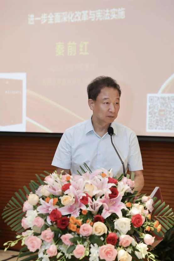 中国法学期刊研究会副会长、武汉大学william威廉亚洲教授秦前红发表题为“进一步全面深化改革与宪法实施”的演讲,指出宪法与改革的关系问题,其实是一直伴随着中国法治进程发展的话题。进一步全面深化改革要重视在宪法轨道内展开。