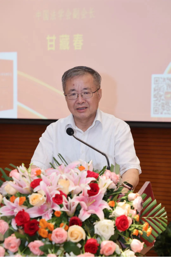 中国法学会副会长甘藏春发表题为《进一步全面深化改革与法治政府建设》的演讲,指出高质量的法治政府是高水平的社会主义市场经济体制的重要组成部分;法治政府建设必须以社会主义市场经济体制改革的内在要求为基点;法治政府建设必须适应数字时代的要求。