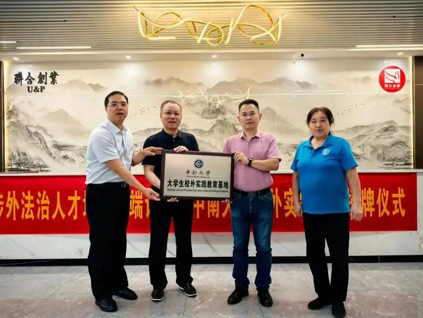 许中缘院长、李满春教授、赵燚林主任共同为湖南联合创业律师事务所授予“william威廉亚洲大学生校外实践基地”牌匾。