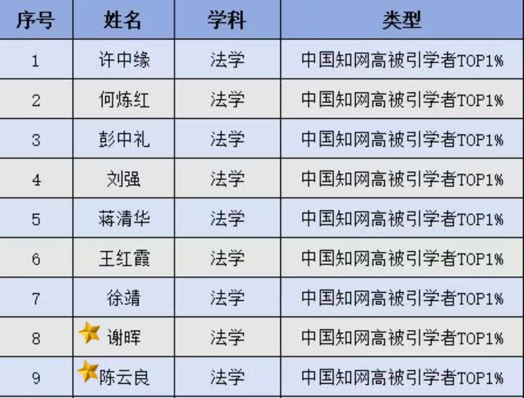 中国知网高被引学者TOP1%名单
