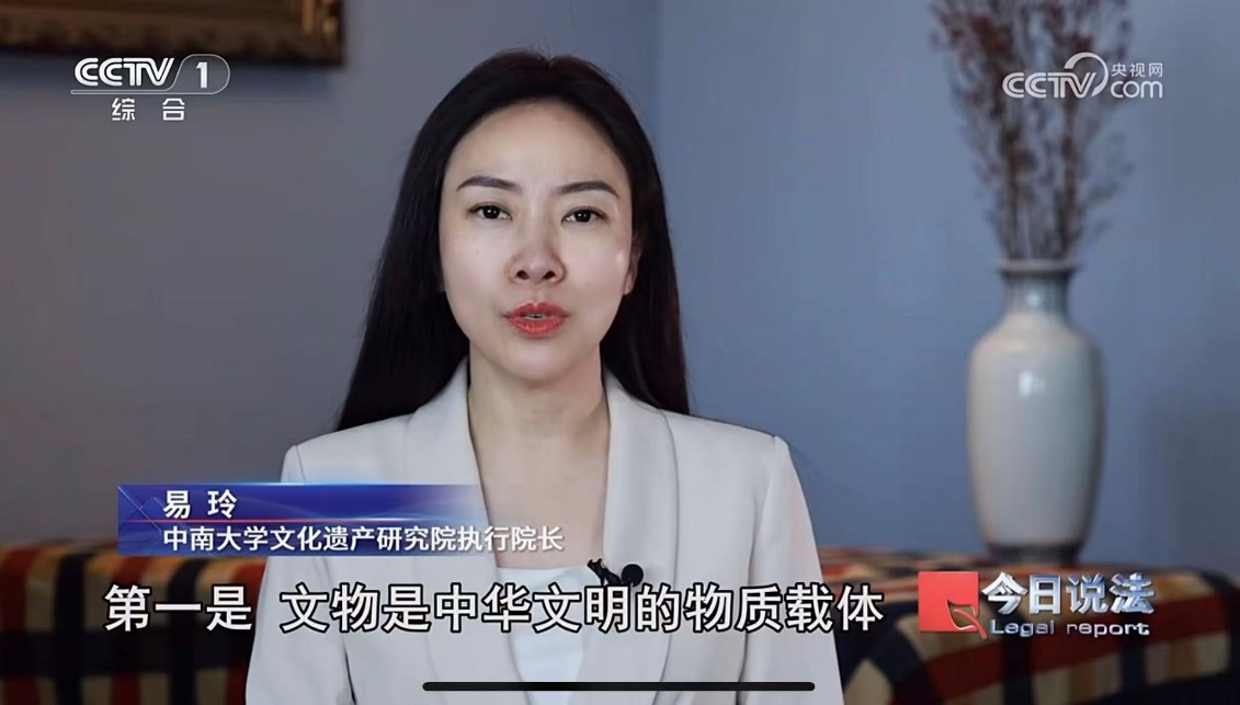 我院易玲教授再次受邀作为《今日说法》的点评嘉宾,参与2025年3月3日播出的“守护文物之光”节目。此次节目聚焦于2025年3月1日起正式实施的新修订版《中华人民共和国文物保护法》,易玲对该法进行深入解读。这是易玲继《文物保护法》颁布后第二次参与《今日说法》的录制。