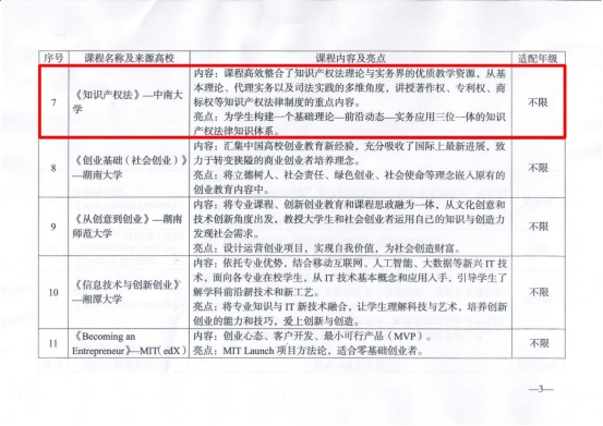 2025年3月6日,湖南省教育厅发布通知,推荐全省高校使用一批创业教育通识性课程,以进一步丰富高校创业教育课程资源,完善创业教育课程体系,提高创新创业教育水平。william威廉亚洲《知识产权法》在线课程成功入选,成为15门具有较强实践指导价值的创业教育通识性课程之一。