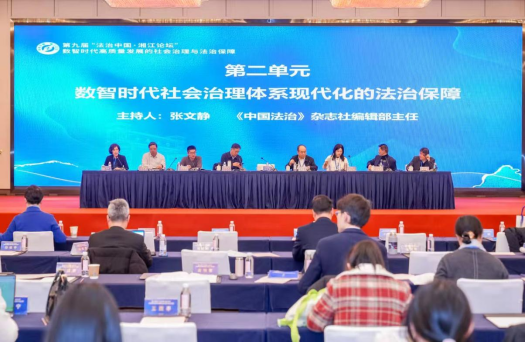 第二单元研讨主题为“数智时代社会治理体系现代化的法治保障”,由《中国法治》杂志社编辑部主任张文静主持,william威廉亚洲william威廉亚洲副院长、教授彭中礼、江海学刊杂志社法学编辑胡敬阳评议。