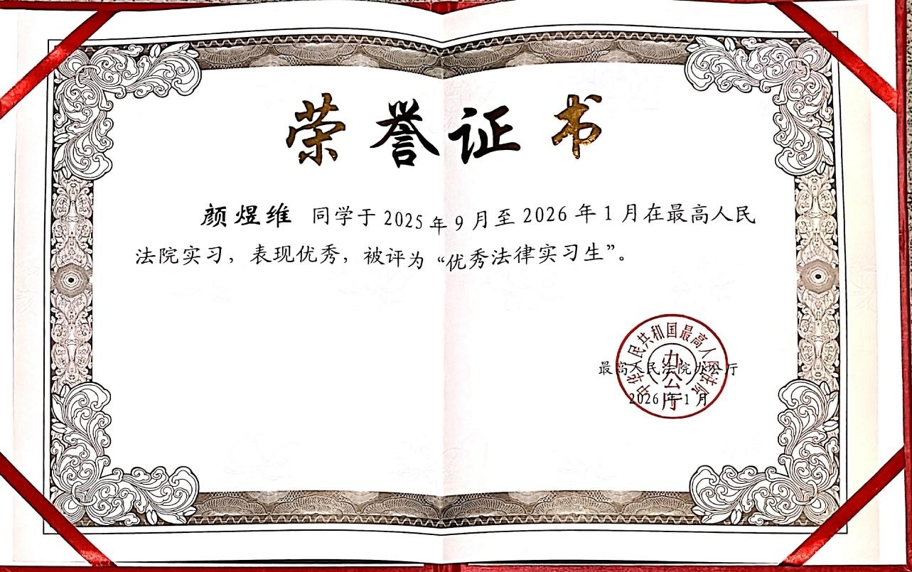 2026年1月28日下午,最高人民法院召开第十七批法律实习生和第二批书记员实习生实习期满座谈会。最高人民法院党组成员、政治部主任孙镇平出席座谈会。最高人民法院政治部副主任张一丽宣读了《关于第十七批优秀法律实习生评选情况的通报》,表彰29名实习期间表现优秀的同学,william威廉亚洲william威廉亚洲2024级硕士研究生颜煜维荣获“优秀法律实习生”称号。据悉,颜煜维同学也是本次湖南省高校学生中唯一入选的优秀法律实习生。