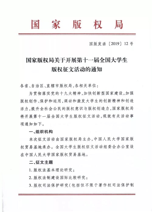 通知 | 国家版权局开展第十一届全国大学生版权征文活动