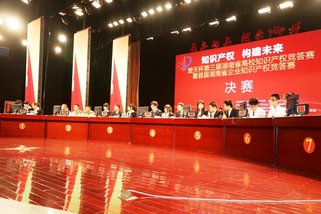 本次竞答赛主要围绕《专利法》、《专利法实施细则》、《湖南省专利条例》、《商标法》和《著作权法》等相关知识产权专业知识。经过初赛,6支高校代表队、7支企业代表队从全省30多支代表队中脱颖而出,进入决赛。决赛现场紧张、激烈、有序、各位参赛选手都摩拳擦掌、精神饱满。我校选手更是沉着应对,稳中求胜。在比赛进行到第四轮环节的风险题中,我校代表队勇敢的选择了分值四十的题目,凭着机智敏捷、对答如流,用良好的心理素质、敏捷的思维和过硬的知识展现了他们的才华,精彩的回答赢得评委一致好评和观众的热烈掌声。