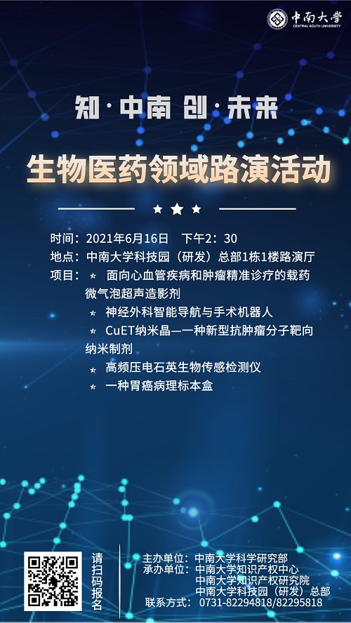 活动预告 | “知·中南 创·未来”生物医药领域路演活动诚邀您的参与