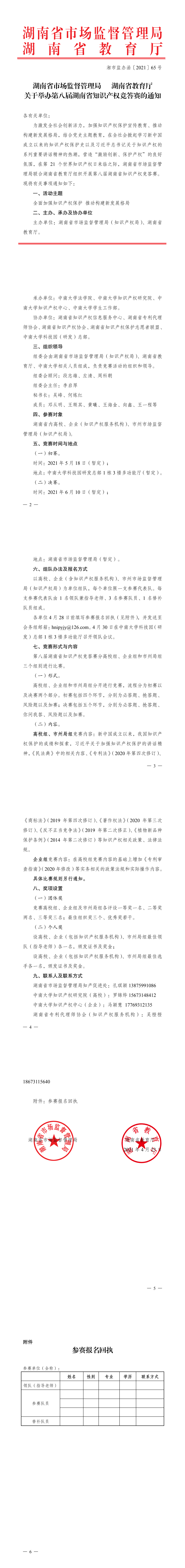 湖南省市场监督管理局 湖南省教育厅 关于举办第八届湖南省知识产权竞答赛的通知